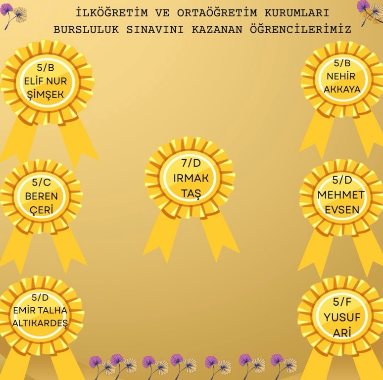 2025 YILI İLKÖĞRETİM VE ORTAÖĞRETİM KURUMLARI BURSLULUK SINAVI BAŞARI LİSTEMİZ